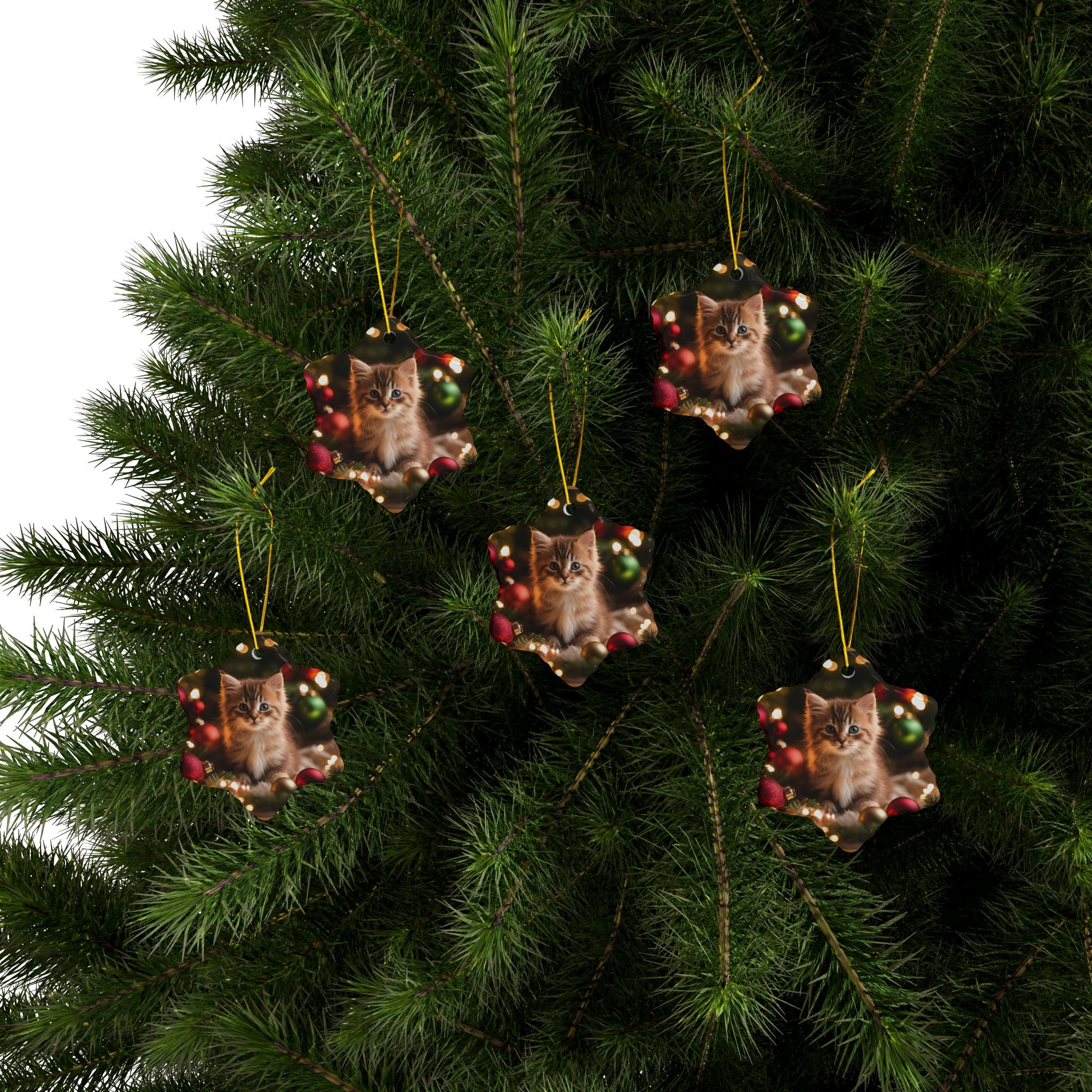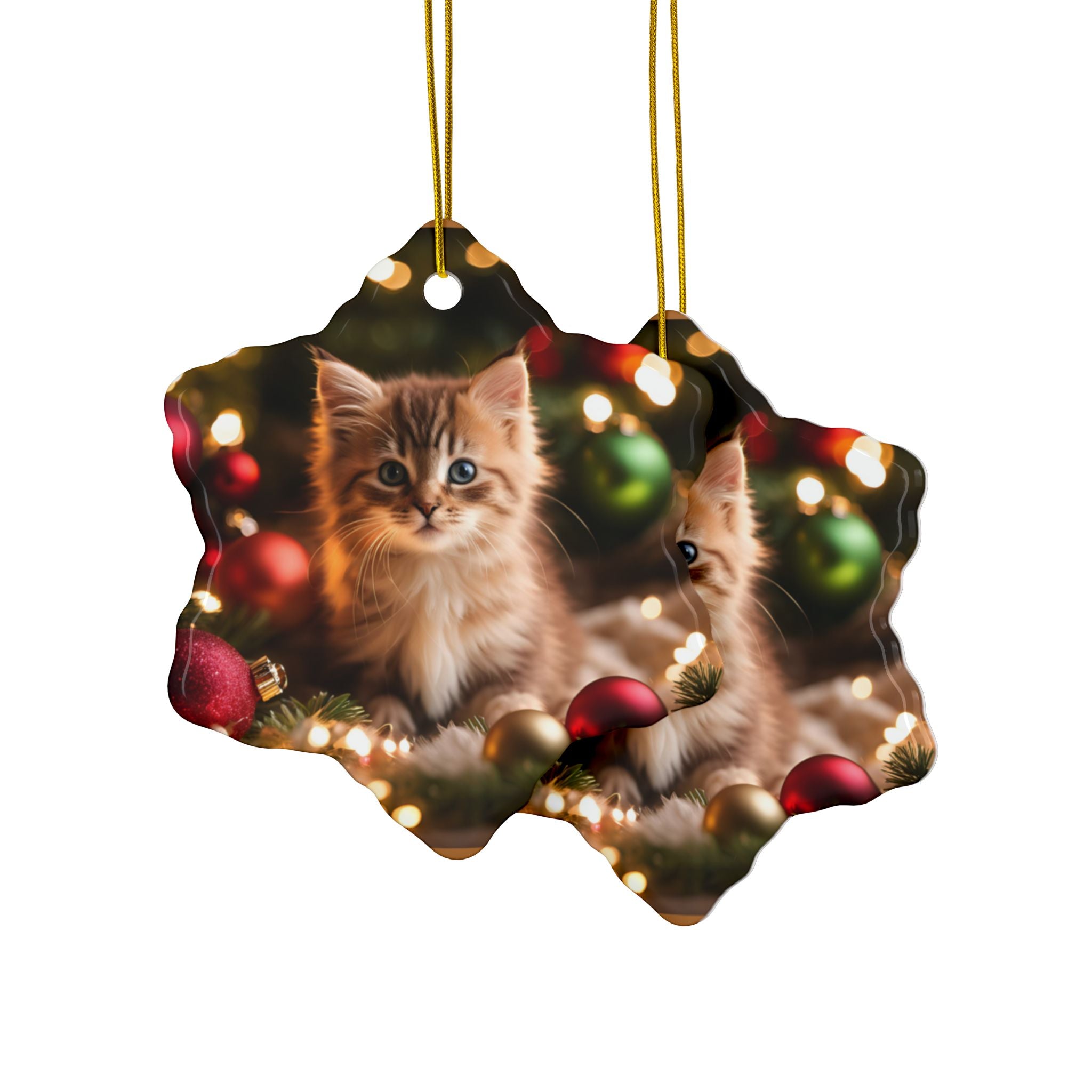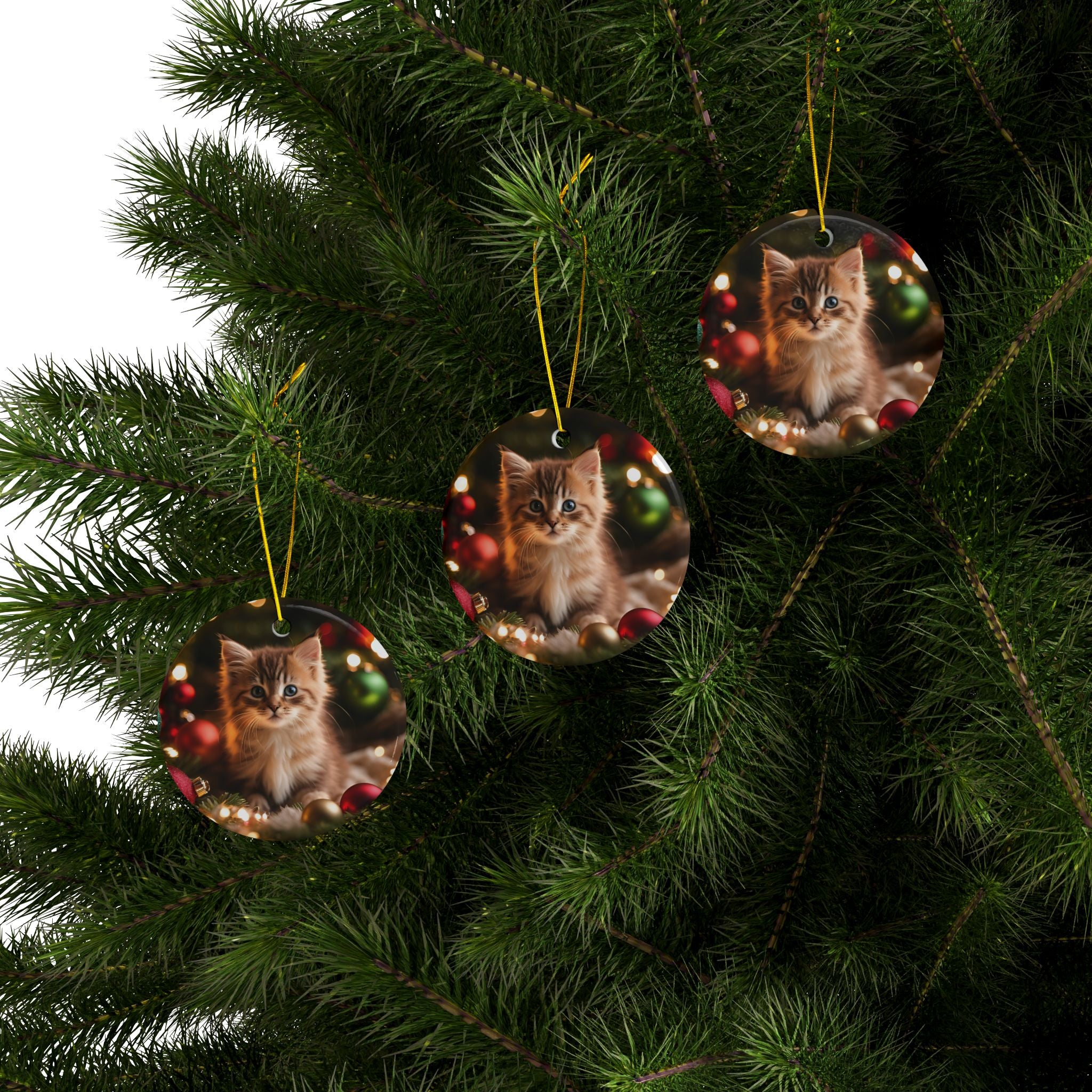 Photo depicting the ​Cute Kitten Christmas Ceramic Ornaments, 2-Side Print, (1pc, 3pcs, 5pcs, 10pcs) from EpiAl's Shop.