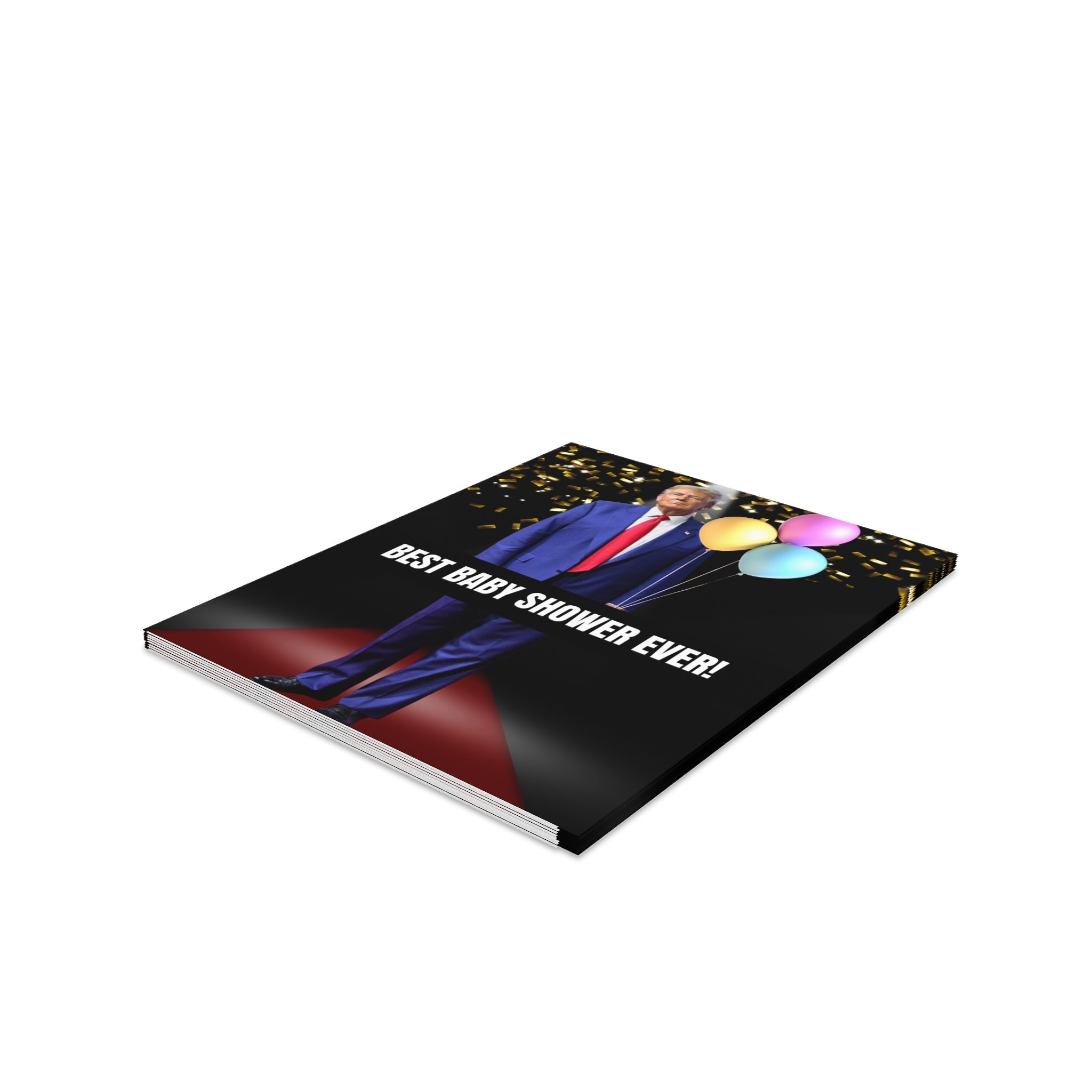 Measuring at 4.25” x 5.5”, these Donald Trump Baby Shower Greeting Cards can handle long-distance transportation with minimal risk thanks to their robust, uncoated cardstock. Available in 8-packs, 16-packs, and 24-packs - each pack comes with size-matching white envelopes for each card.